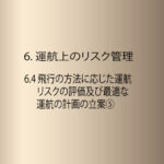 目視外飛行において、リスク軽減策を踏まえた運航計画の立案の際に留意するべき要素の例として、以下の項目が挙げられる。